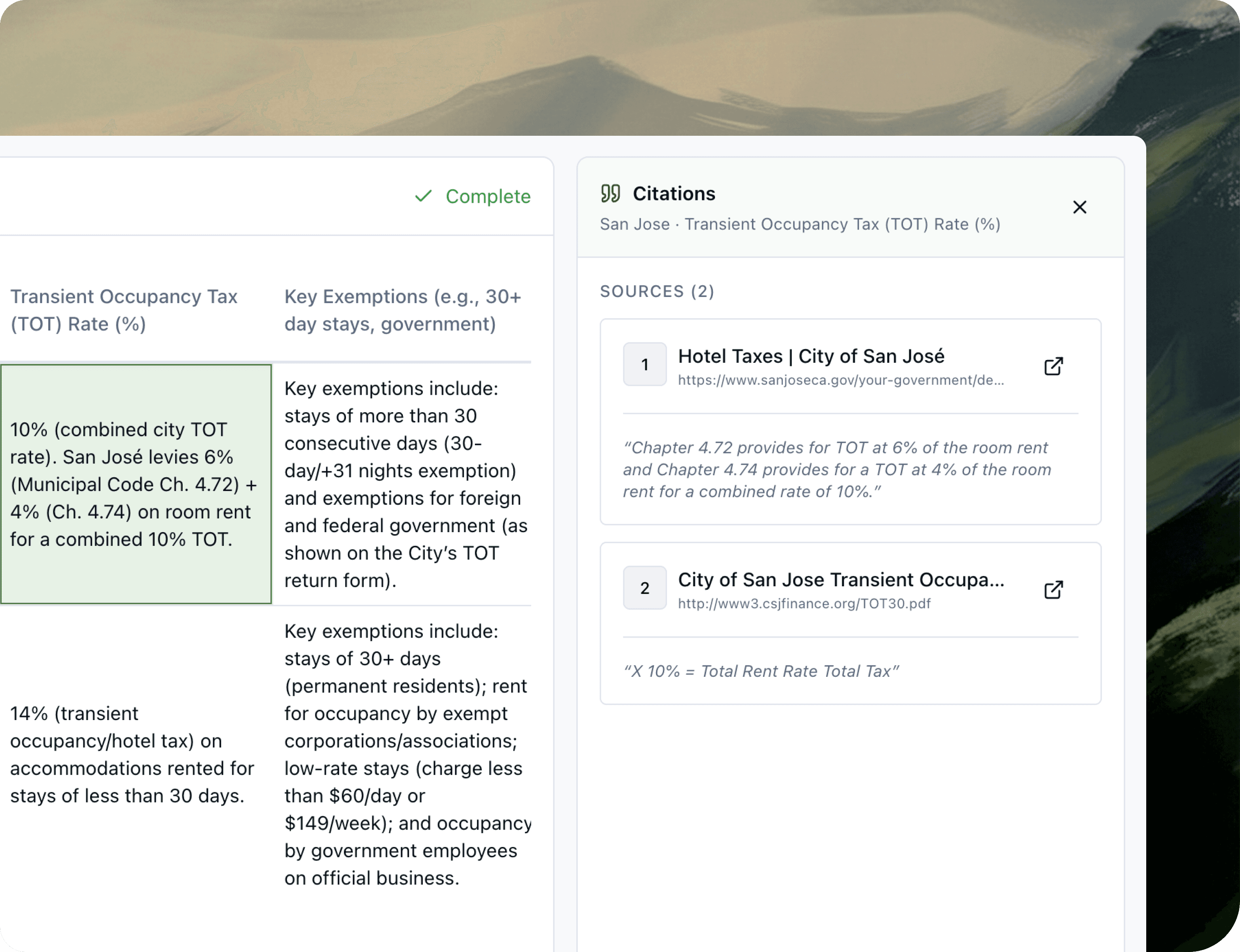 Every benchmark comes with receipts. Prophecy Gov links each table cell and key takeaway back to the exact source passage.